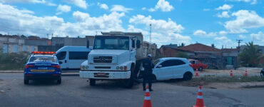Motorista fica ferido em colisão entre carro e caminhão na Avenida Lauro Porto