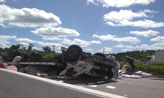 Um caminhão carregado de bicicletas tombou na BR-101, na manhã desta sexta-feira (3), na altura do km 49, no município de Japaratuba, provocando a morte do motorista. O caminhoneiro ficou preso entre as ferragens e o corpo foi retirado pelos bombeiros militares.