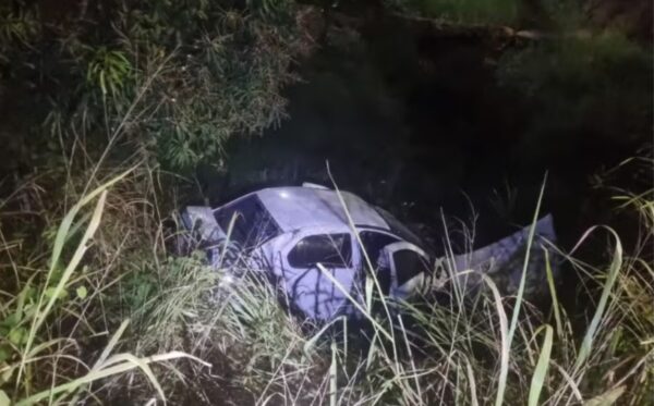 Os dois veículos caíram numa ribanceira na noite do sábado (19), após os motoristas perderem o controle da direção.
