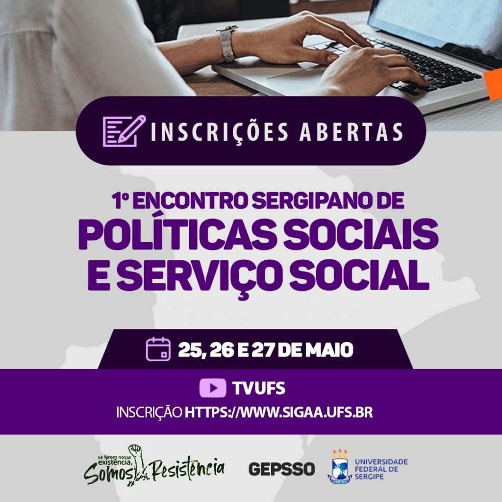 Em referência ao Dia do Assistente Social, celebrado no último dia 15 de maio, o Coletivo de Assistentes Sociais Resistência e Luta e o Grupo de Estudos e Pesquisas em Fundamentos, Formação em Serviço Social e Políticas Sociais (GEPSSO), vinculado a Universidade Federal de Sergipe (UFS), realizarão o I Encontro Sergipano de Políticas Sociais e Serviço Social, nos dias 25, 26 e 27 de maio, com transmissão ao vivo pelo canal da TV UFS no YouTube.