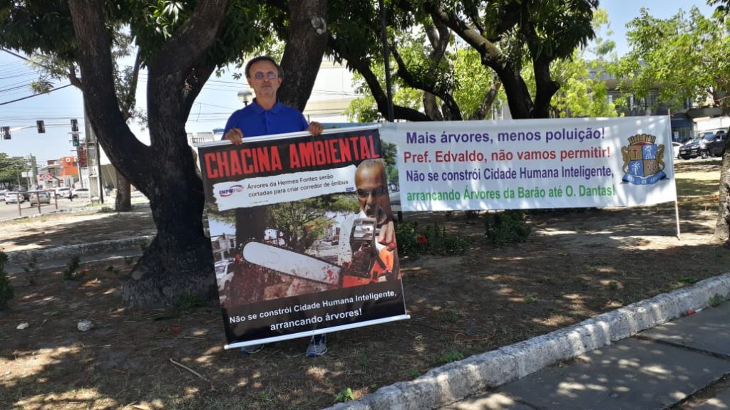 “O que o prefeito está fazendo na Rio de Janeiro, por exemplo, é uma obra decente porque está ocupando um espaço que não tem utilidade nenhuma hoje para fazer o corredor de ônibus. Parabéns pra o prefeito. Agora o que agente não pode aceitar, como cidadão, é que o prefeito inicie uma obra na Hermes Fontes sem consultar a população. E o mais grave: a Secretaria do Meio Ambiente tem que está a serviço é da população e não a serviço do prefeito. Ela não está ouvindo ninguém. Infelizmente, a realidade é essa”, conclui o líder do movimento, que está nas ruas com faixas e cartazes denunciando a ação da Prefeitura.