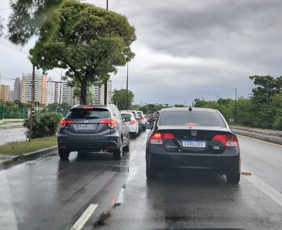 “Na Tancredo Neves está tudo parado e estou aqui há mais de 20 minutos praticamente sem sair do lugar, por que o trânsito não anda. Sóm Jesus na causa”, diz o motorista de aplicativo Alfredo Dias.