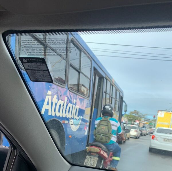 “Amigos do jornal, estou passando agora pela ponte Aracaju/Barra e o trânsito travado, congestionamento enorme que só se registrava na época da ponte interditada em meia pista, aliás, se brincar está até pior. Que loucura essa mudança no trânsito de Aracaju, que prejudica até as cidades vizinhas. Vou chegar ao trabalho atrasado por causa desse trãnsito caótico e louco”, desbafa o contabilista Antônio Menezes.