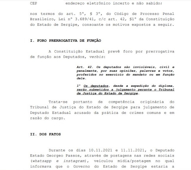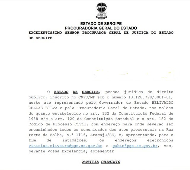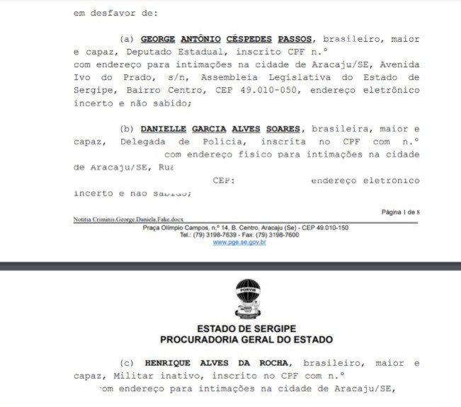 Por incluir o deputado estadual Georgeo Passos, que tem foro especial por prerrogativa de função, o documento jurídico também foi protocolado na Assembleia Legislativa de Sergipe.