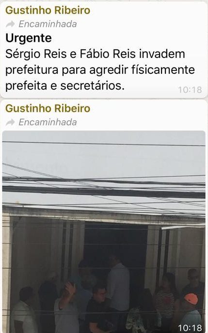 “Um fato lamentável ocorreu hoje pela manhã, um crime de fake news cometido pelo deputado federal Gustinho Ribeiro. Quero dizer que eu e meu irmão, deputado federal Fábio Reis, na próxima segunda-feira iremos até à delegacia prestar queixa-crime contra o deputado pelo uso dessa ferramenta que é ilegal e que infelizmente está sendo utilizado pelo parlamentar. Hoje pela manhã estivemos na Prefeitura de Lagarto, não encontramos a prefeita, não encontramos o deputado, mas fomos muito bem recebidos pelos funcionários da prefeitura”, diz Sérgio Reis.