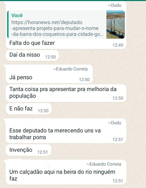 “Falta do que fazer, daí dá nisso. Esse deputado está merecendo uns vá trabalhar…… Invenção”, disse o morador conhecido por Dudu, que completa. “Acho que o estado de Sergipe deveria se chamar Marcelo Déda. Tem que mudar também. Vamos escolher um novo nome para Aracaju. Aproveita j´á vira esculhambação. Acho que não tem o que fazer mesmo”, diz ele, que é compartilhado pela moradora Ângela Maria.
