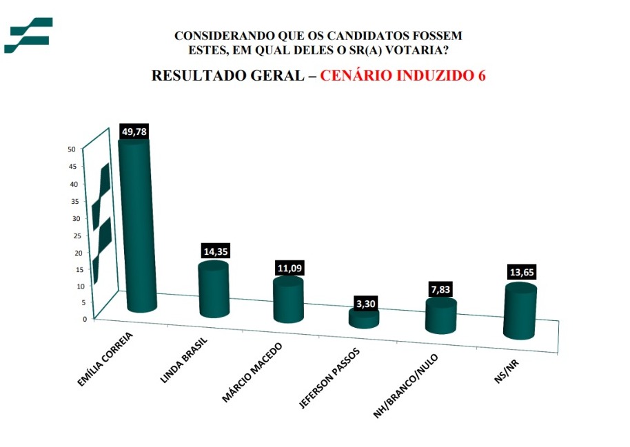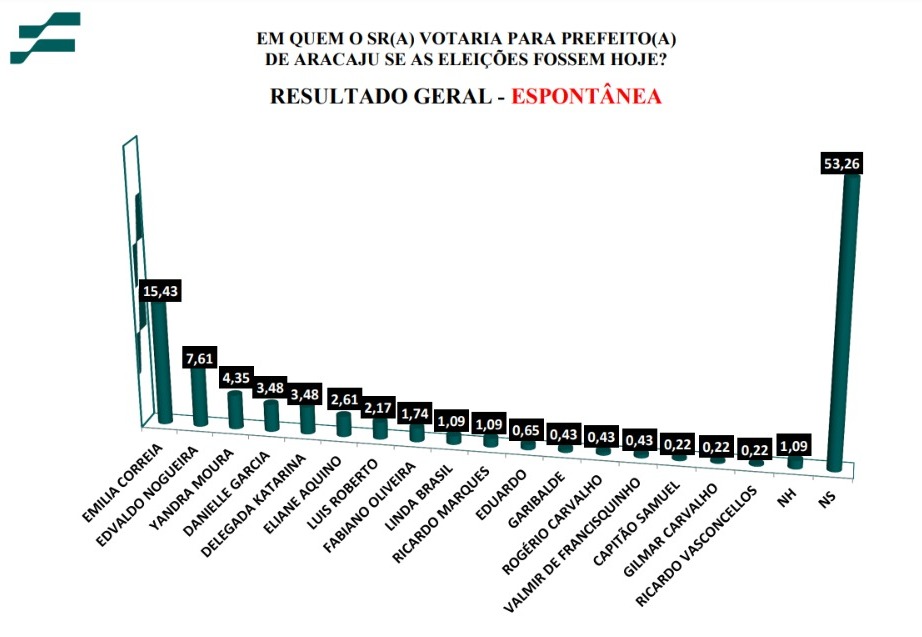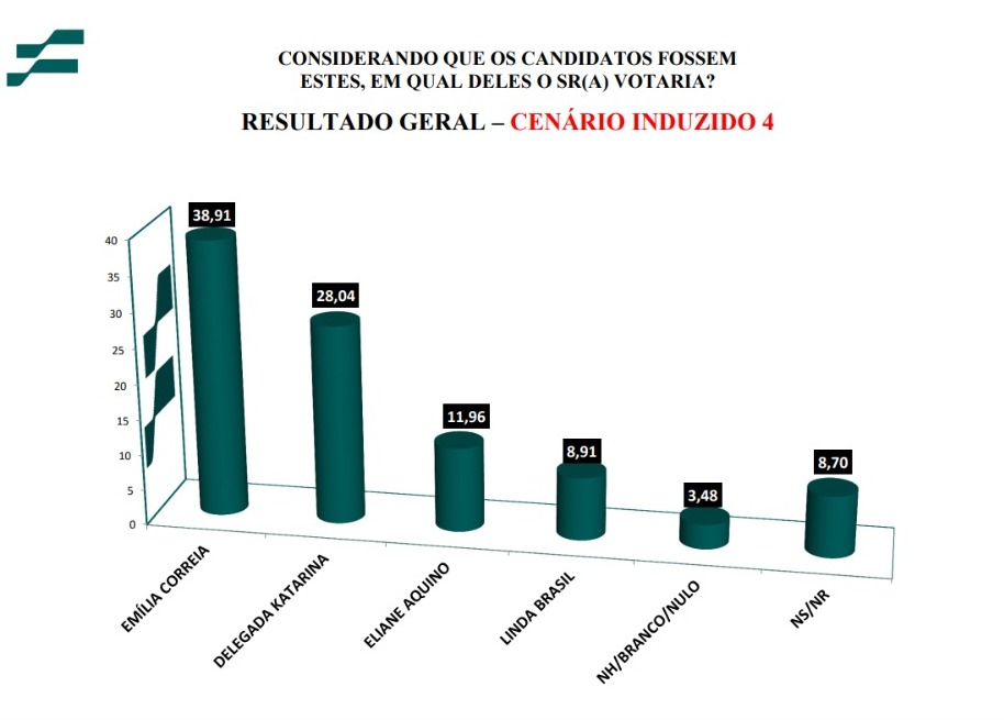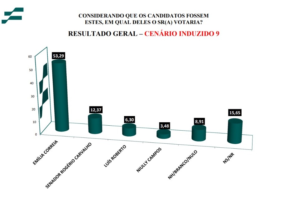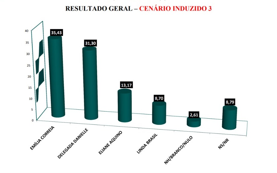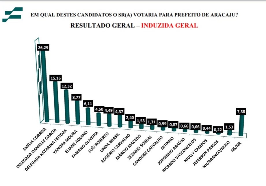 Pesquisa realizada pelo Instituto França de Pesquisa (IFP), entre os dias 25 e 27 de outubro deste ano, para a Prefeitura de Aracaju, divulgada na noite desta quarta-feira (1º), revela a liderança absoluta da vereadora Emília Côrrea, variando de 15% a 49% do eleitorado aracajuano.