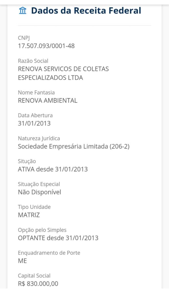 “A Renova tem capital de R$ 830.000,00, empresa de pequeno porte. A Lei de Licitações (Lei nº 14.133/2021) autoriza a Administração exigir capital social mínimo ou patrimônio líquido mínimo equivalente até 10% do valor estimado da contratação, mas a Renova tem apenas 1,56% do valor do contrato”, observa o empresário.