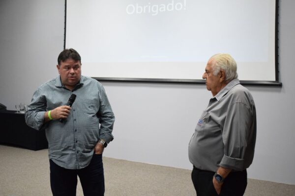 No final do primeiro dia de evento, Luciano Barreto, acompanhado de sua esposa, Maria Celi Teixeira Barreto, recebeu uma placa das mãos de José Matos, em reconhecimento à sua contribuição para o setor.