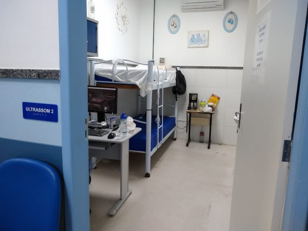 A imagem abaixo constitui o local de “descanso” dos servidores e servidoras. Um local onde as camas continuam empilhadas umas sobre as outras, desrespeitando qualquer regra de distanciamento social estabelecido pela Organização Mundial de Saúde (OMS). Chegou ao Sintufs a informação de que um trabalhador que acabara de  passar por procedimento cardiológico – logo, pertencente a grupo de risco – estaria exercendo suas funções no setor de Raio-X. Entendemos que todos os servidores e servidoras pertencentes a grupo de risco devem ser liberados de suas funções ou desenvolvê-las a partir de trabalho remoto, tal como já foi dialogado com a administração acadêmica.
