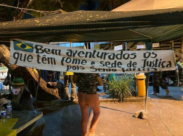 “Estamos aqui de forma muito pacífica sem nenhuma baderna, até porque somos patriotas e defendemos a ordem, para protestar contra o sistema eleitoral que nós não acreditamos, desconfiamos dele por uma série de fatores, mas também para pedir que o Exército Brasileiro, instituição que orgulha todos os brasileiros, possa intervir neste processo e colocar nosso país nos eixos e, assim, manter a ordem e levar a nossa pátria ao progresso. É isso que nós estamos fazendo, exercendo um direito legítimo e constitucional, que é o direito a manifestação pacífica e ordeira”, explica Eliseu Silva, um dos participantes do ato público.