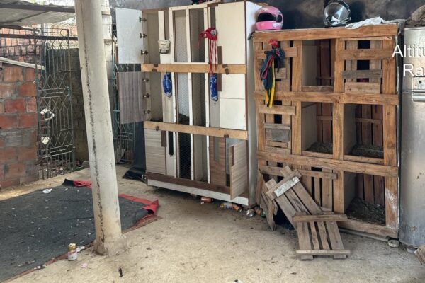 A equipe do Pelotão Ambiental foi acionada para atender a denúncia de que havia uma rinha de galo na localidade. No imóvel, os policiais constataram a existência de um evento destinados à briga de galos, além de várias jaulas utilizadas como cativeiros.