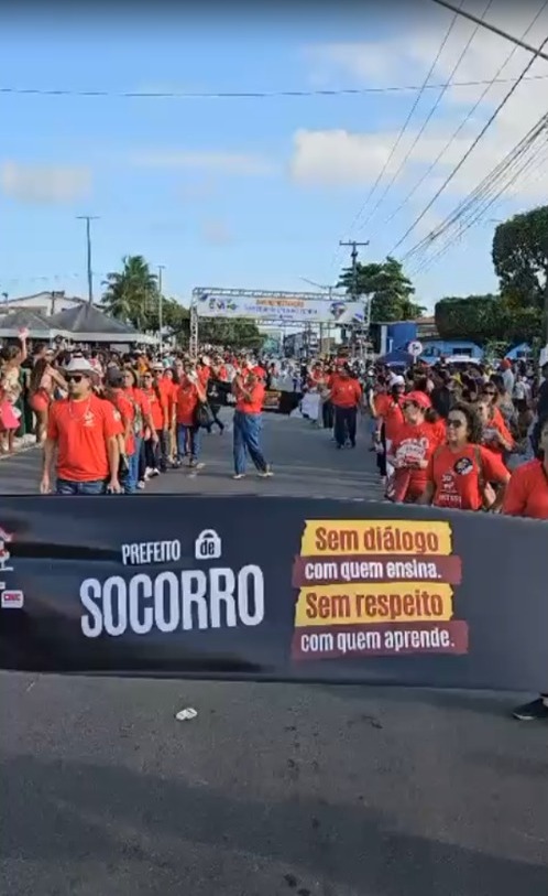 O desfile cívico deste domingo (21), no Conjunto João Alves, em Nossa Senhora do Socorro, deixou claro que a insatisfação dos professores com a gestão municipal só cresce. A participação dos educadores, que deveria ser momento de celebração, acabou marcada por uma cena do prefeito Samuel Carvalho (Cidadania), interpretada pela categoria como sinal de desrespeito.