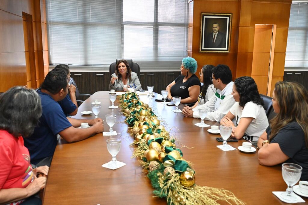 O Procurador Geral do Ministério Público do Tribunal de Contas, Eduardo Côrtes, e a presidenta do TCE, Suzana Azevedo, receberam os dirigentes de sindicatos e da Frente Ampla em Defesa do Serviço Público. Em posse dos documentos entregues, uma nova reunião será marcada para discutir o tema com mais profundidade.